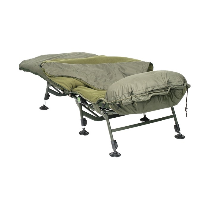 The Frostbite consists of 3 layers. You sleep between the bottom layer and the second layer. In cold conditions you have two upper layers of insulation to keep you snug and warm - Whilst in hot weather conditions you can unzip and take off the top layer, leaving you with a cool summer bag. The top two layers are wider (fuller), allowing for a roomier, more comfortable bag and the Frostbite also has a built in pillow so it cannot slip off in the night. The Frostbite is designed for the specialist carp angler to cope with all conditions and provides the ultimate in comfort through spring,summer,autumn and winter. It is simply unrivalled.