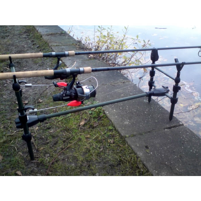 The H-Gun pod features adjustable main bar, legs and buzz bars giving the angler choice when positioning his rods.