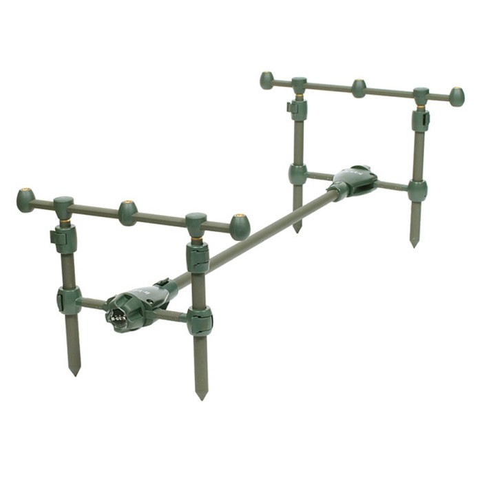 Compact Pod set-up that comes supplied with its own carry bag. The H-Gun pod features adjustable main bar, legs and buzz bars giving the angler choice when positioning his rods.