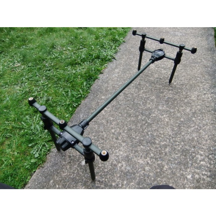 Compact Pod set-up that comes supplied with its own carry bag. The H-Gun pod features adjustable main bar, legs and buzz bars giving the angler choice when positioning his rods.