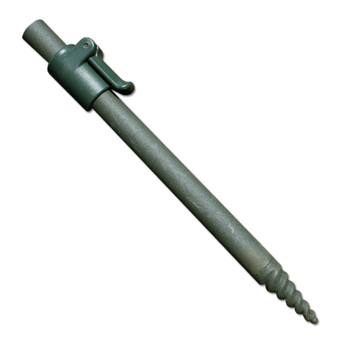 Lightweight aluminium extending 16mm sticks with secure cam locking one touch adjustment. Hard case subterfuge coating with auger screw point. Available in three lengths. Sold individually.