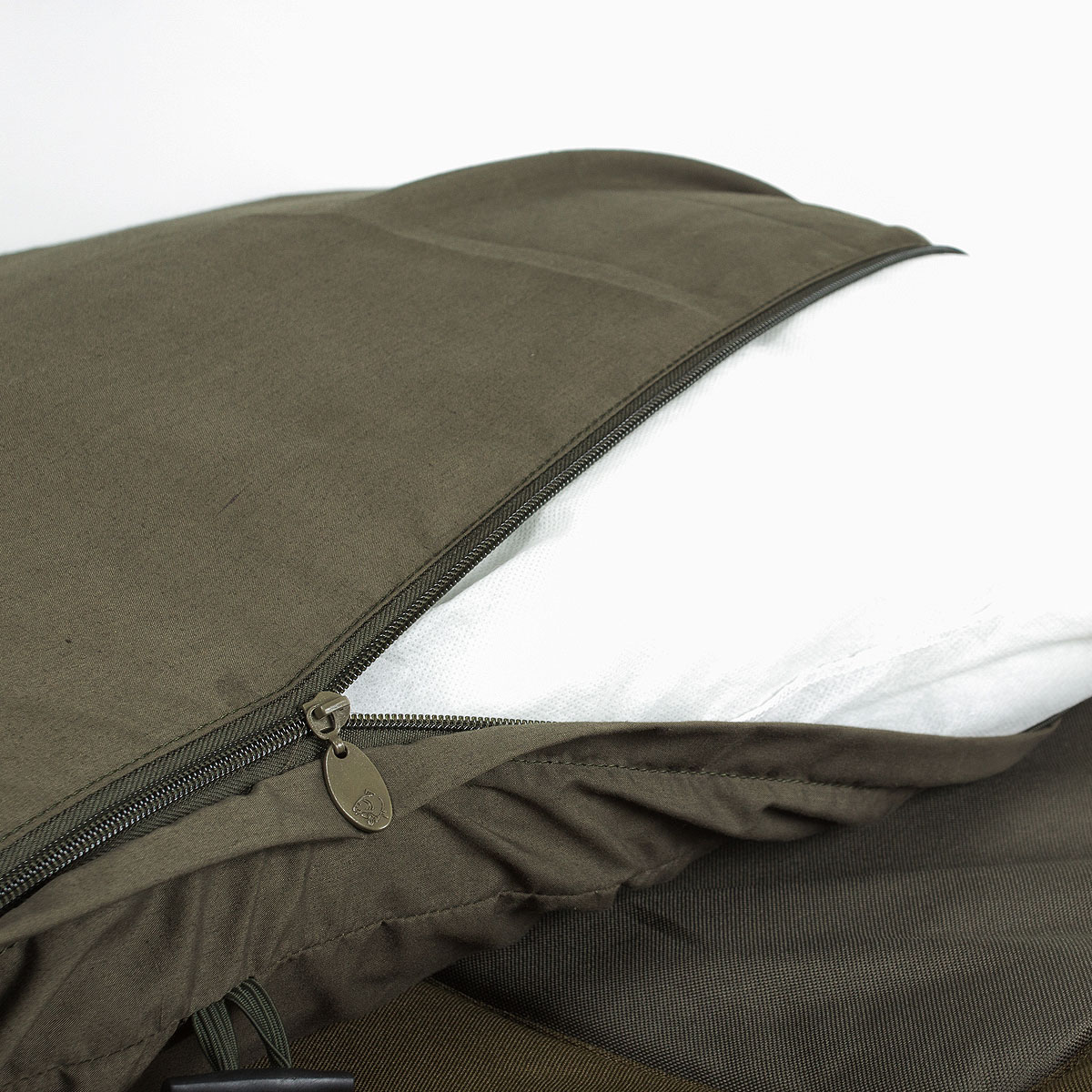 Warm touch peachskin pillow with embroidered H-Gun logo. Rear zip to remove the cover for washing, finished with twin toggles that allow it to be fitted to H-Gun Bedchairs and Sleep Systems. Other products shown for illustrative purposes only. Approximate Dimensions: 68cm (L) x 45cm (W).