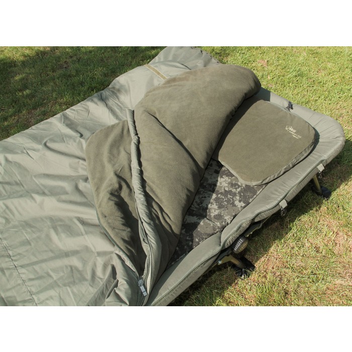 Equipped with a patented mattress system, the Nash Indulgence Air-Lite Sleep System 4 Emperor offers maximum warmth in the winter, with the added benefit of being removable for a cooler night's sleep during the warmer months. This adaptable mattress ensures the utmost comfort all year round.
