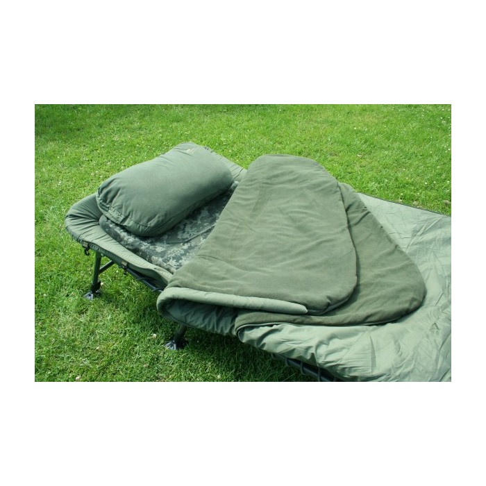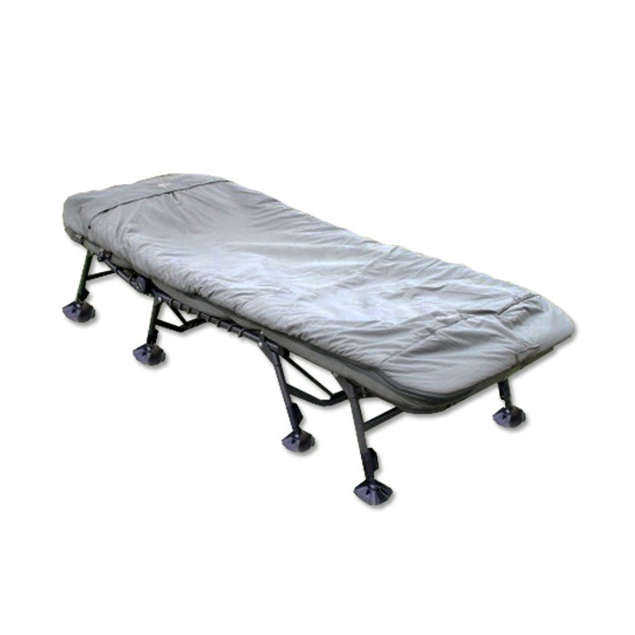 The bedchair is designed with an enhanced double gauge, aero-light aluminium frame that offers both durability and lightweight convenience. The double braced legs, formed from flat extrusions, marry the frame design to achieve total rigidity, ensuring a stable and secure sleeping surface. The bedchair is also equipped with a unique Triggalock leg adjustment system that allows for easy and precise adjustments to accommodate any angler's preference.