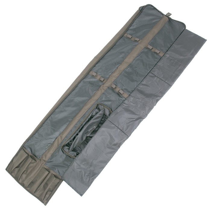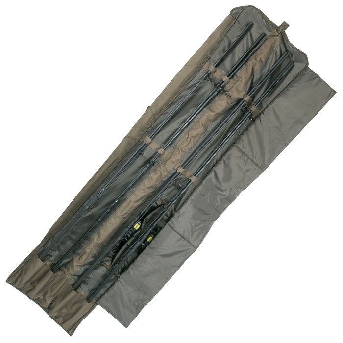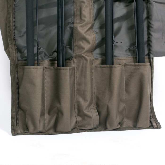 Heavy duty zips keep your rods and reels secure, while standing up to the rough handling that's part and parcel of everyday bankside life. Along the spine, the holdall is reinforced by three aluminium sections, which shield your rods from impact and damage in transit. Large external pockets provide storage for your banksticks, rod pods,and brolly, allowing you to comfortably carry everything you need to even the most secluded of swims. Perfect for stalking anglers, and anyone looking for a neat and compact luggage load, this rod holdall from Nash gives you everything you need for a successful session.