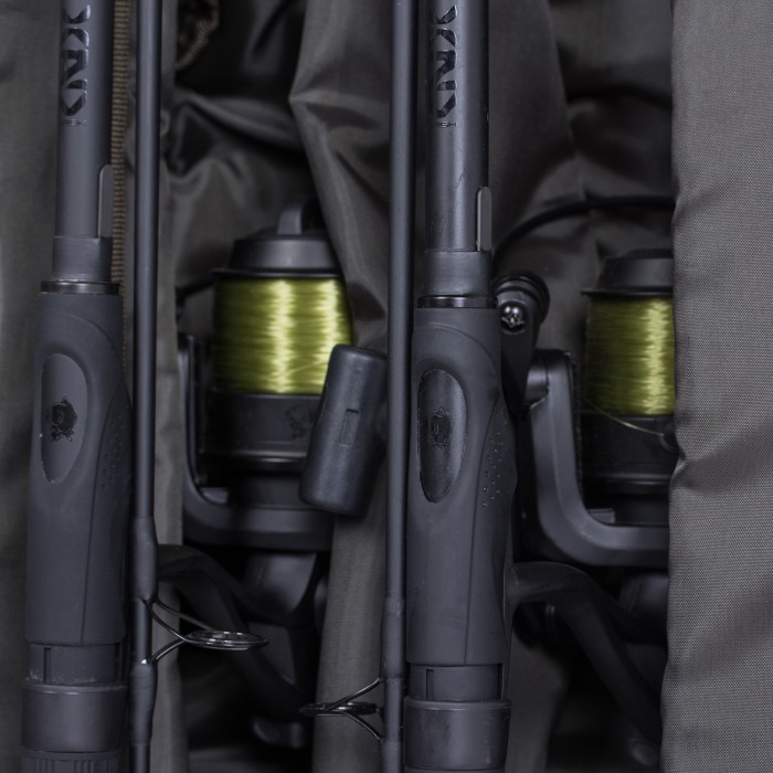 Designed to carry two bare and two tackled rods, the Nash KNX 2 Rod Holdall features smaller reel pouches, which offer a snug, secure fit, and enhanced protection when you're not fishing big pit reels, and ensures that the most delicate part of your angling arsenal makes it to the bank in the best possible condition, giving you the best possible chance of landing that fish of a lifetime.