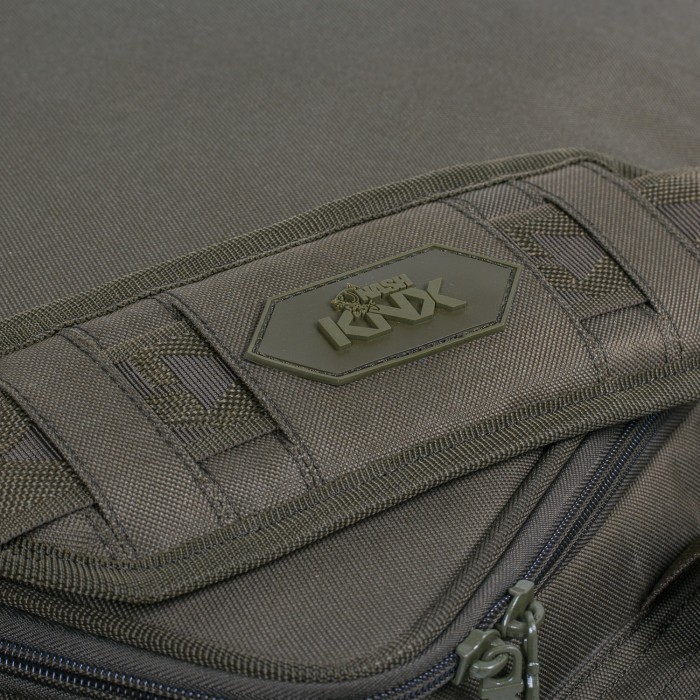 Perfect for all your carping needs, the NashKNX Large Carryall looks as good set down beside you at the water's edge, its stiffened base protecting your clothing and gear from the rigours of the waterside life, as it does packed on a barrow as part of a full week's campaign load. Three sided, twin zipped access makes it easy to get at the gear you need, while pockets offer convenient storage for a wealth of smaller accessories, including the large Box Logic tackle box, which fits perfectly into the purpose-designed front pocket.