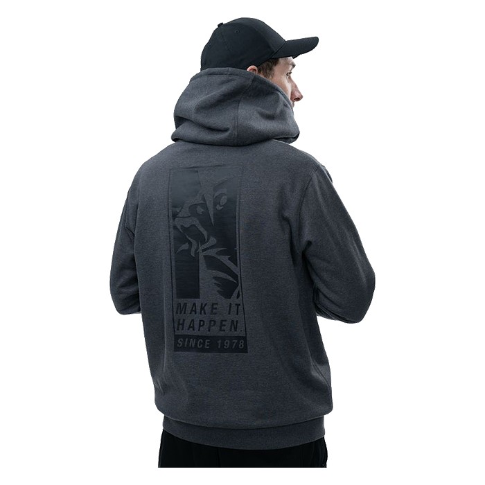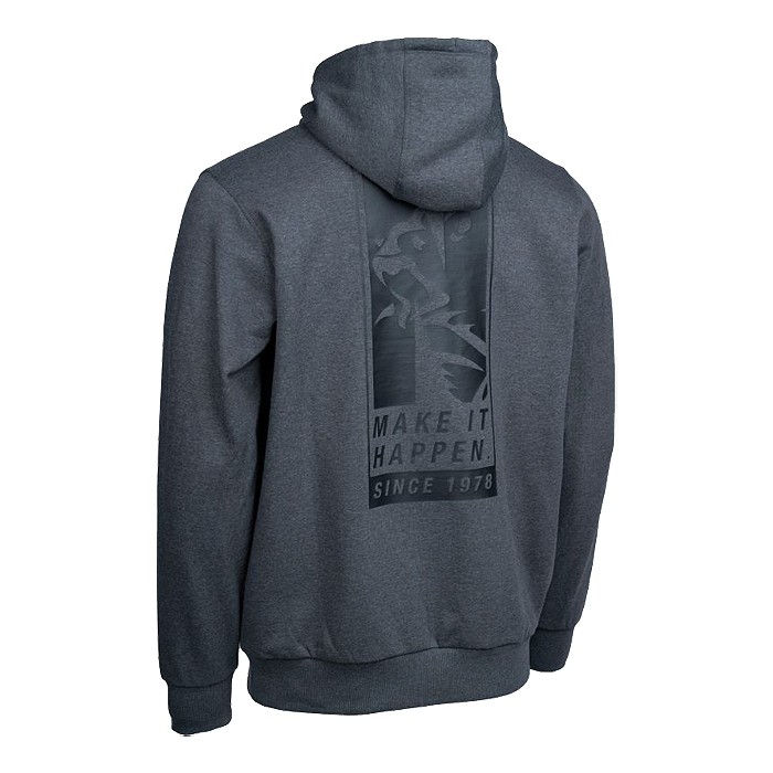 The MIH Since 1978 logo pointing to the over 45 year heritage of Nash as a carp brand, printed full height on the reverse of a distinctive and smart Charcoal Marl hoody. Available in Small to XXXL.