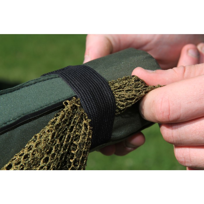 - an elasticated strap on the underside of the float which holds any excess net until a fish is netted.