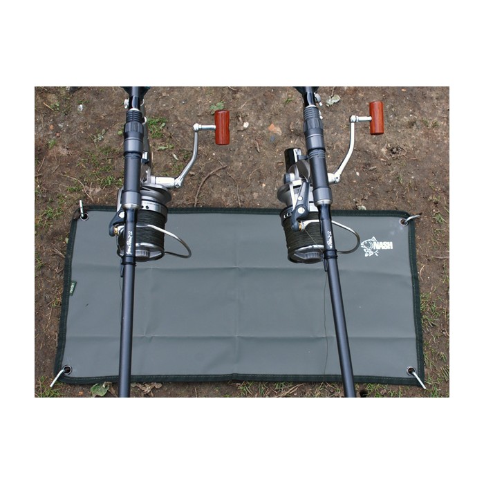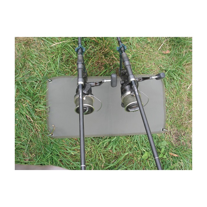 It is a dual-purpose reel protector/slack line fishing mat. Peg underneath your reels to prevent torrential rain splashing mud, sand or grit over your precious reels that could lead to damage. Or peg underneath your indicators when slack line fishing. The indicators can be laid on the mat avoiding contact with mud or line catching grass stems. Two rod mats can be used together for the front and rear of the set-up.