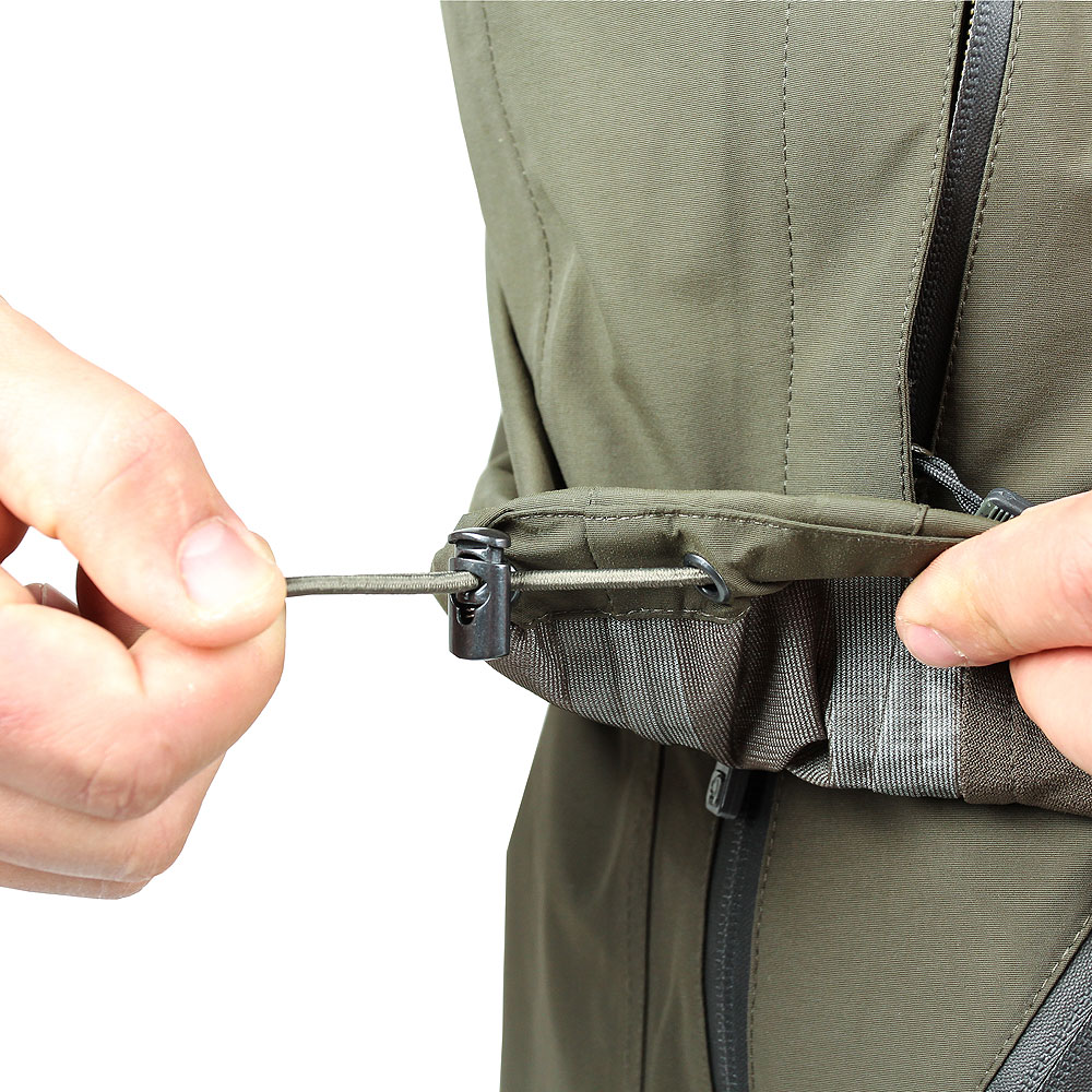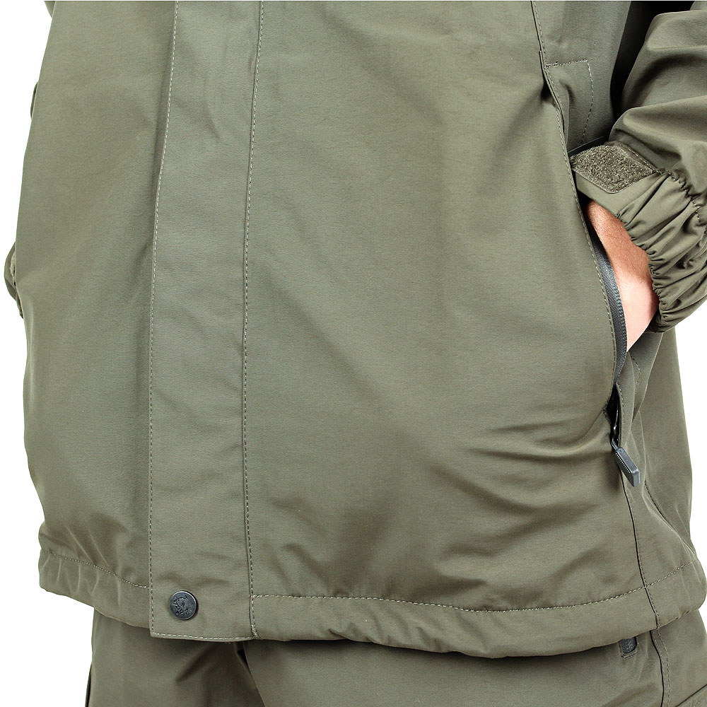 The Nash Scope Ops Rain Jacket gets its name from the Aqua Sense 140 Outer Protect Skin (or, OPS) fabric from which it is manufactured. This fabric is rated to a hydrostatic head minimum of 10,000mm. This is the same waterproof rating as most bivvies and floatation suits, ensuring that you’re going to stay perfectly dry in even the most violent of rain storms. This fabric also offers a breathability rating of 3,000g/m2 for each 24 hour period. Breathability in waterproof fabrics is essential as it allows air flow into your waterproof without letting water in (air molecules are smaller than water). This ensures that you don’t end up sweating excessively, getting so damp inside your waterproof that you might as well not have warn it at all! For the active angler a high breathability rating like the one offered by this jacket is absolutely essential.