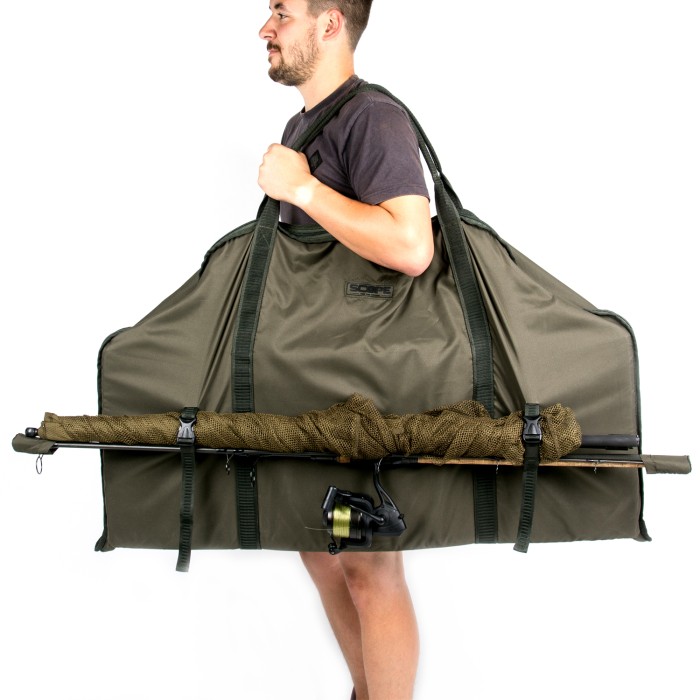 Strap your Scopes and Sawn-Offs to your sling mat for the ultimate mobility solution. High density foam padding and peachskin water resistant finish. Folds to be carried sling style and doubles for carrying stalking kit. Twin external buckle and webbing compression straps carry Scope and Sawn-Off rods and nets on the outside when moving swims. Full heavy duty zips. Extra tough webbing carry and weigh handles. Other products shown for illustrative purposes only. Dimensions: 96cm x 75cm (padded area).