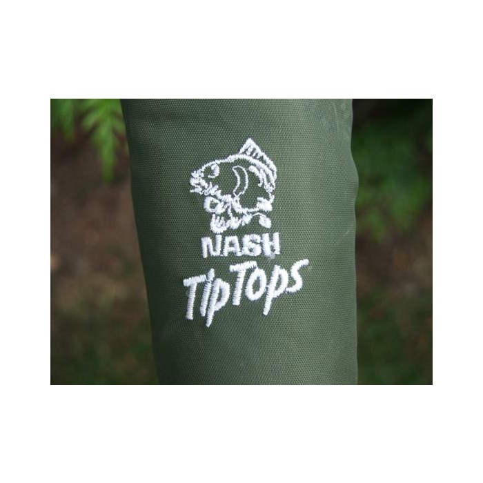 Nash Tip Tops are must have items to protect your rods from all possibilities. Velcro straps help to secure rod tips and butt sections, the straps also allow plenty of space for large tip eyes and the downward section is open which allows the straps to fold underneath 50mm eyes present on most long range carp rods. The straps when fastened are very secure and hold the rod together very well. The rod straps give a large amount of protection to both top and bottom sections of the rod, Very important to prevent the damage of expensive rods on todays market.