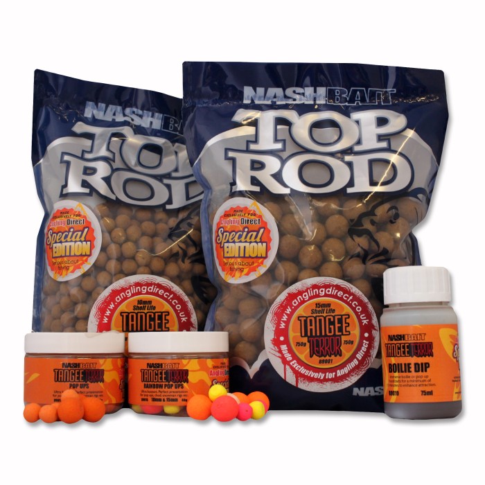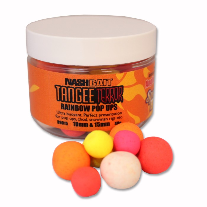 Nash Tangee Terror Tangee Terror is a new bait that has been spawned using all the knowledge and resources from the Nash Bait guru Gary Bayes, who has been working closely with the Angling Direct staff, to create a 'different’ bait that both fish and anglers want. Based on the hugely successful Nash Monster Squid range, with a solid fishmeal base, Tangee Terror combines some of the greatest Nash Carp attractors of all time, with a hint of something different; a twist on many modern baits, currently on the market. This highly nutritious bait leaks the flavours and nutrients from the base mix out into the water with added attraction from Shellfish Sense Appeal, Tangerine Oil Palatant and Intense Sweetener, which all combine in perfect harmony to create a bait, that is not only appealing to Carp, but to all Coarse fish. It sounds simple, but it wasn’t… As we are serious about fishing, the bait had to be just right, it had to fit the Angling Direct ethos, hence the reason why we went through 8 different mixes before we eventually settled on the one we have on our shelves today. Tangee Terror is available in shelf life and a freezer, in both 10mm and 15mm with an 18mm coming soon! As you’d expect with any quality boilie, there are also a full range of extra’s, which include a Boilie Dip and Standard and Rainbow Flouro Pop-ups, which feature a whole range of mixed sizes, meaning there’s no need to purchase two separate tubs.