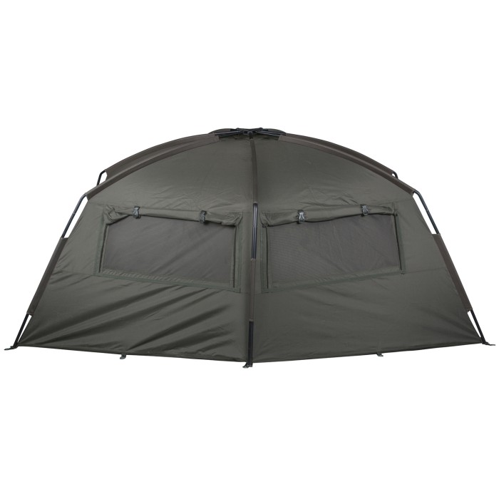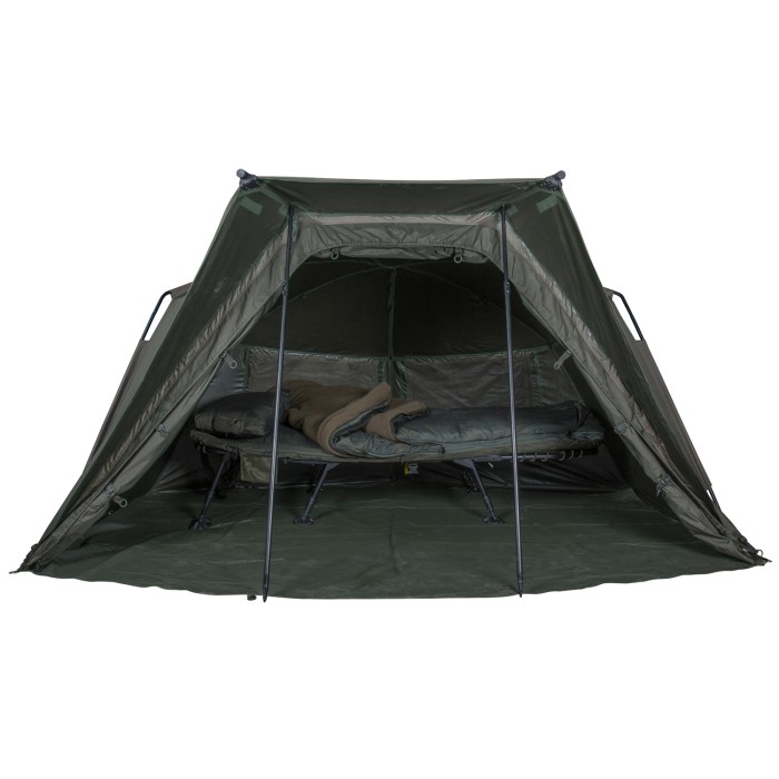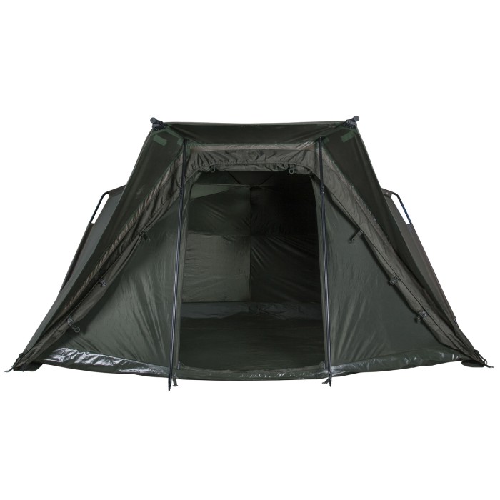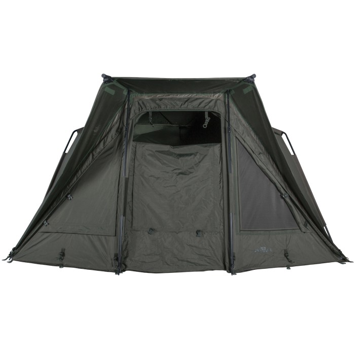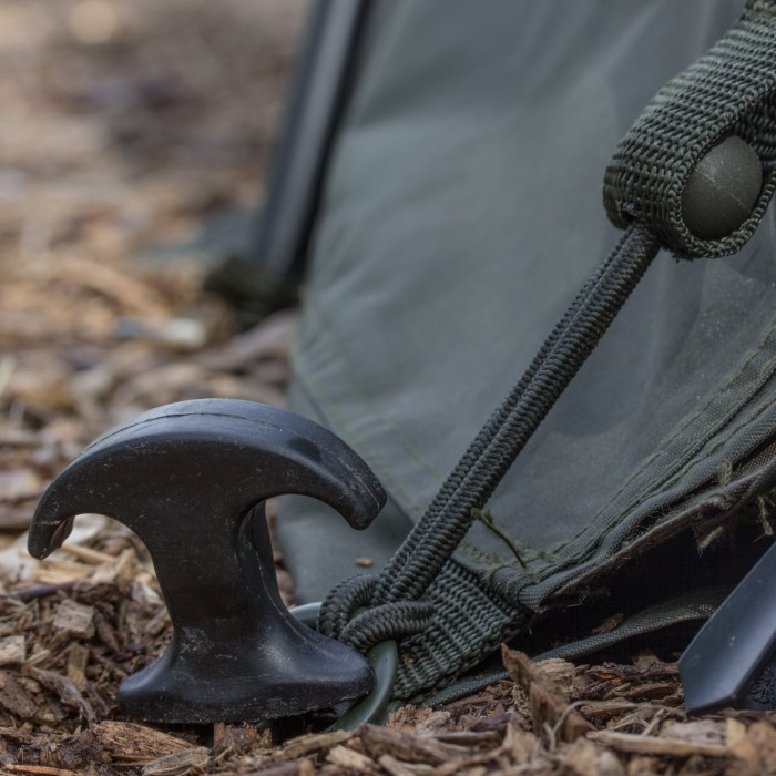 The front panel of the bivvy can be completely rolled back, providing you with an open fronted system. Both front side panels feature mosquito mesh windows (as well as solid infills) and the front door has both solid, mesh, and clear PVC window options. The front door can also be used in a letter box style in the very coldest months – perfect for use when you want to enjoy the view over your carp rods without suffering the effects of inclement weather systems.