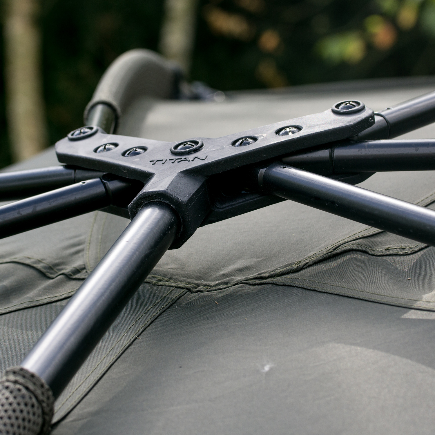 The Nash Titan TC Pro boasts an upgraded glass filled nylon block. This is the central boss system which sits at the top of the bivvy, giving the structure its ultra-quick setup. This new design ensures that the bivvy is super light in weight and this TC Pro comes in at under 10kg, allowing you to transport this bivvy with ease. Whether you’re barrowing between swims or you are packing this bivvy into its carry case at the end of the day, this feather-weight design ensures that you’re never suffering from a sore back or aching arms after a mobile angling session.