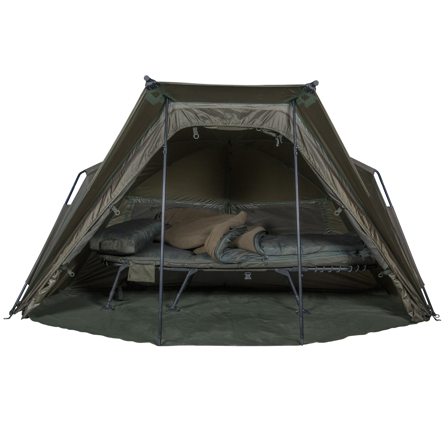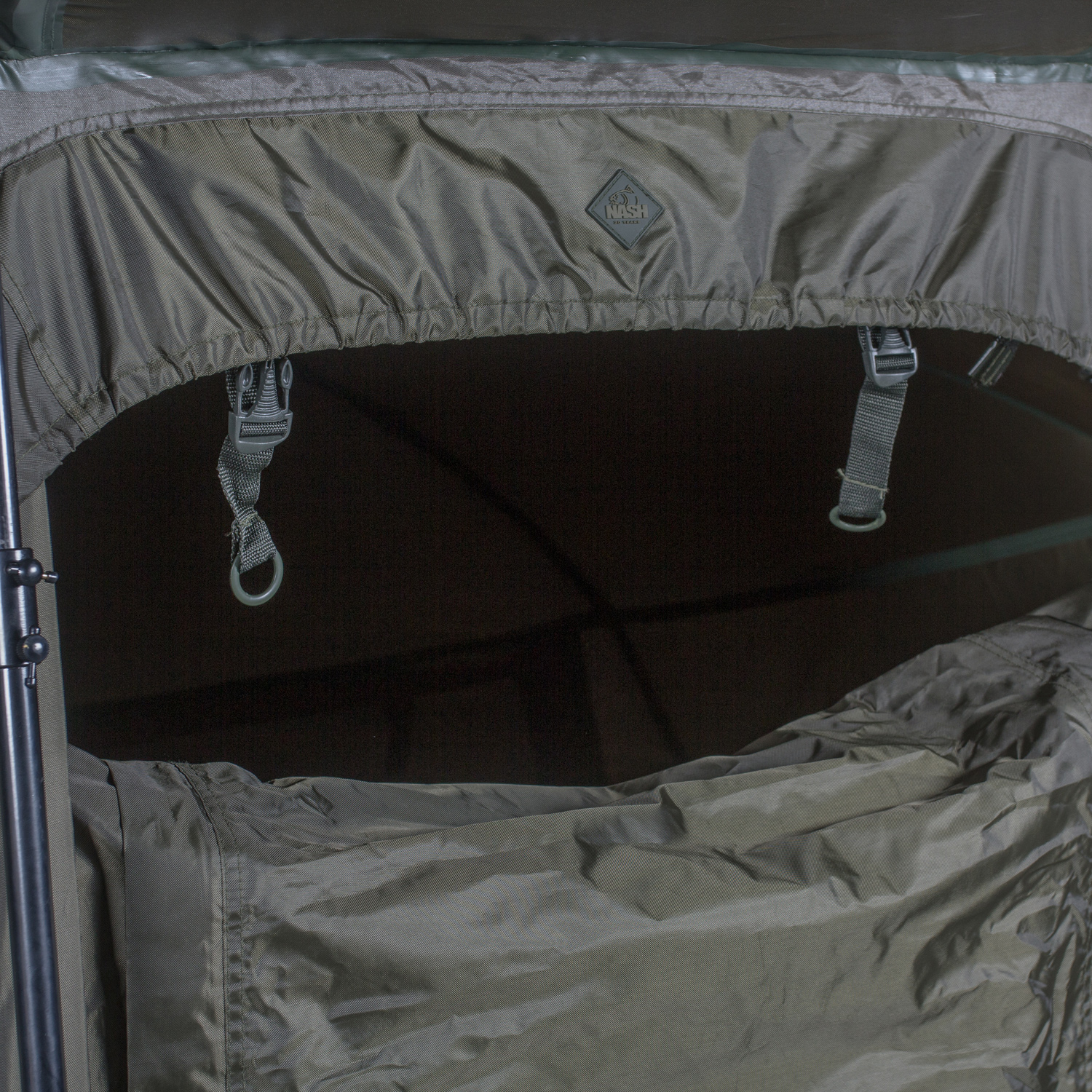 The removable front panel of the bivvy allows you to use this system as a standard brolly style day shelter, if you should choose. By inserting the panel you can transform the bivvy into a versatile year-round shelter system. The front door of system can function in the letter box style, which is ideal for use in the most inclement weather conditions. It also has a mosquito mesh infill option supplied as standard, which is ideal if you’re enjoying a quick summer overnighter and don’t want to invited nasty bugs or other creepy crawlies into your shelter. The Nash Titan TC Pro also benefits from improved rear ventilation windows, making it the ideal lightweight option for warm weather use. What’s more, the TC Pro boasts an improved breathable Aquasense material construction, which really sets it apart from the standard TC in both hot climates and wet weather conditions.
