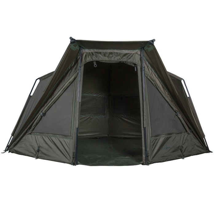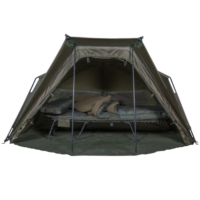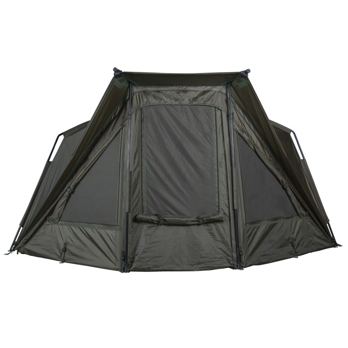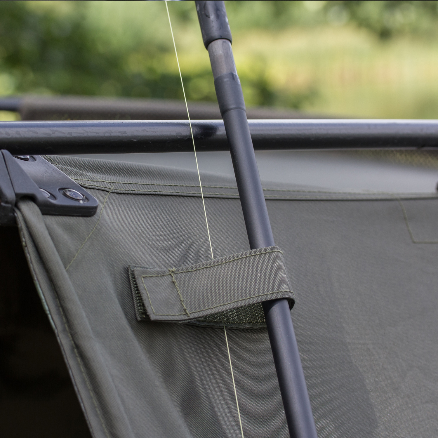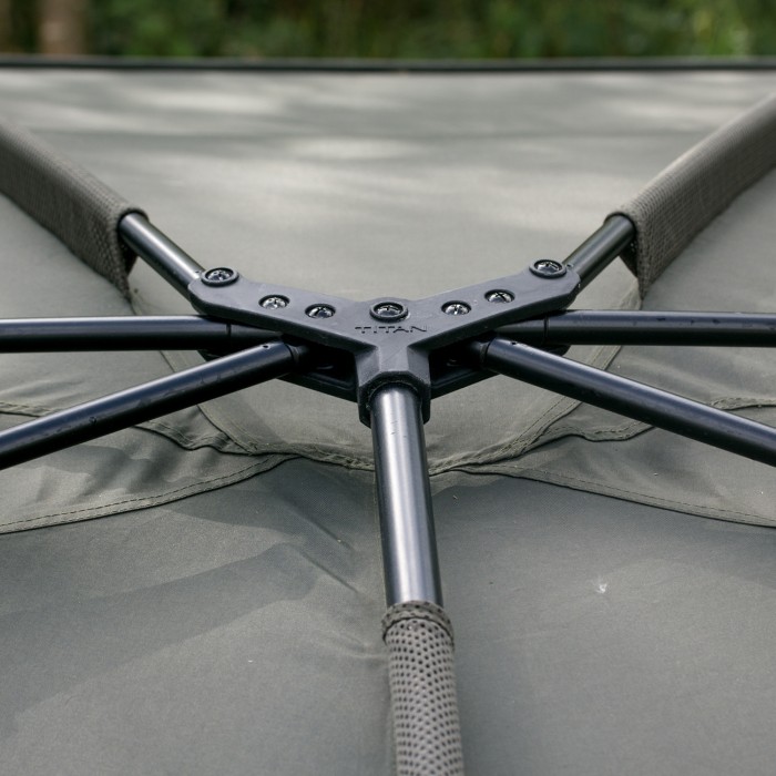 One of the best new features on this new range of Titan bivvies is the improved frame design, which works to maximise the internal space in the bivvy. This gives the TC Pro a completely flat back, enabling you to push your bedchair flush against the rear of the bivvy. This ensures that you have buckets of room out of the front of your system, allowing you to store all the gear that you might need for a mobile session with ease. The improved frame also features extend front ribs, which form a storm peak at the front of the system. The storm peak is an ideal year-round asset for the bivvy. In the summer months, this peak provides outstanding shelter from the vey worst of the sun’s rays, giving you ample shade from under which you can sit and survey your swim. In wet weather conditions, this storm peak practically eliminates rain ingress into the open door of the bivvy, keeping you dry even when you’re using the system with the front completely removed.
