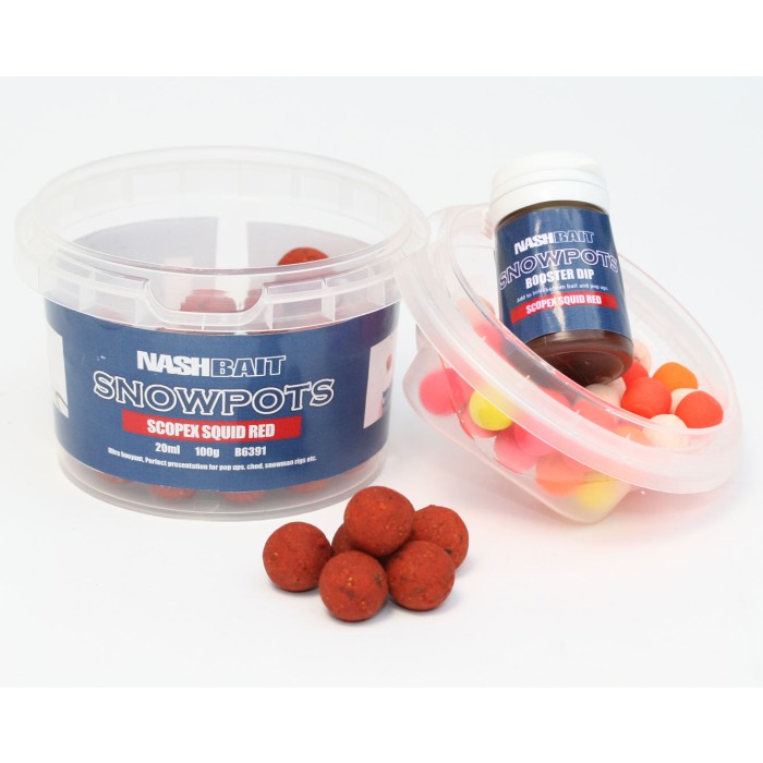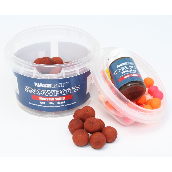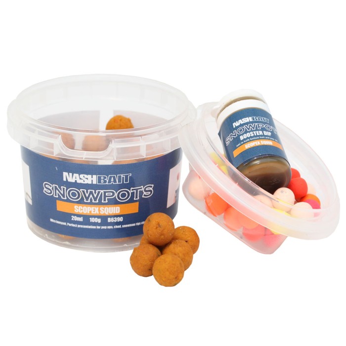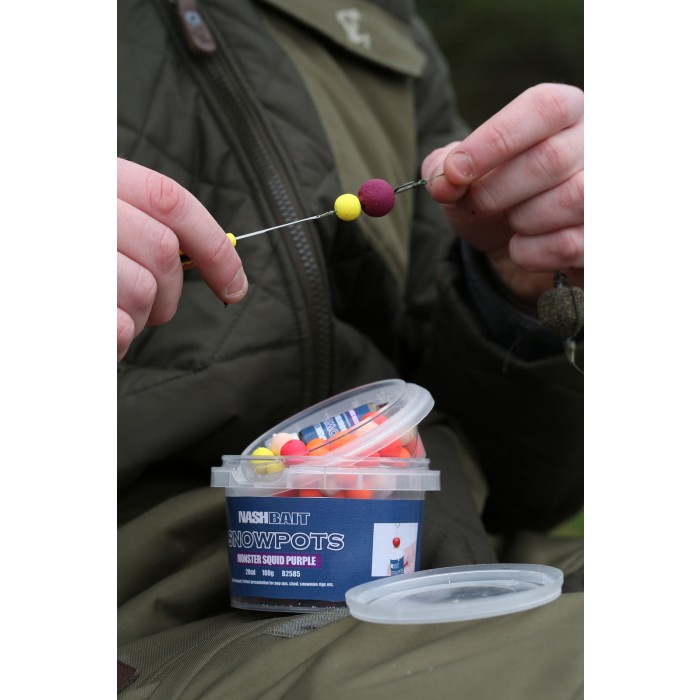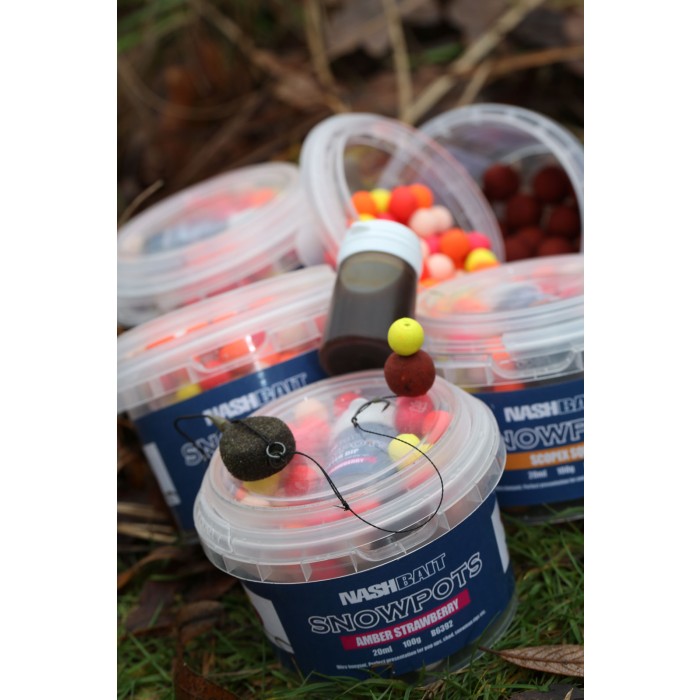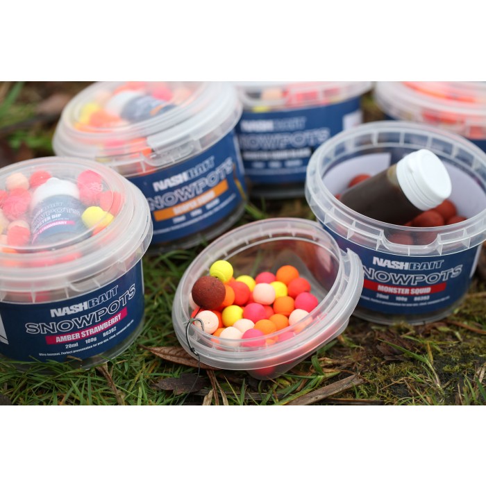 Nash Snowman Pots are a one-stop solution for creating the ultimate snowman presentation. Each handy pot comes complete with the three separate elements that together create this awesome presentation; bottom baits, pop-ups and dip.