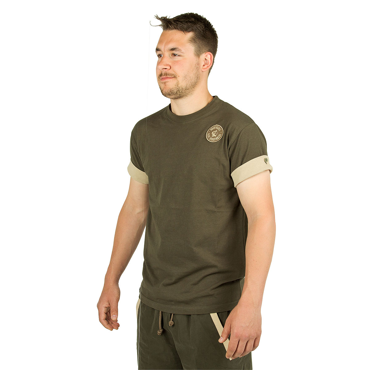 The Nash Your Path T-Shirt is manufactured from soft cotton. This means that this t-shirt is exceptionally comfortable to wear and it will dry quickly if you happen to get caught out by a short summer shower. The key feature of this Nash Your Path T-Shirt is the sleeves. These sleeves feature a roll-up beige panel, which can be buttoned into position. Not only does this let you change up your style on the bank but it also provides that little extra air flow around the under-arm area on the bank. The button is particularly handy as it means you won’t get distracted by your sleeve slipping down your arm whilst you’re trying to get your new personal best carp into your landing net.