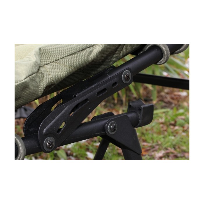 The Nash Zed Bed boasts a lay flat design that completely eliminates the need for a hand wheel, providing unparalleled comfort without the fuss, weight, and obstruction commonly associated with traditional bedchairs. With its leg tilt feature, you can achieve a perfect head and pillow incline for enhanced comfort throughout the night, ensuring you wake up refreshed and ready to reel in the big ones.
