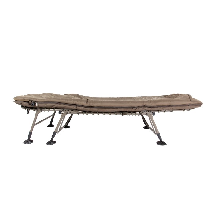 Another Nash first, Zed Beds were a logical innovation that moved us on from the obsolete legacy of bedchairs being used for sleeping by night and moved out of a bivyy to be used as a chair by day leaving hand wheels obsolete, removing excess weight, bulk and obstruction. Zed Beds offer exceptional support and comfort through their uninterrupted lay flat frame design real luxury at a realistic price. Designed around a super strong frame with an ultra-comfortable mattress, the head section can be inclined using leg adjustment to tailor sleeping position and comfort to the individual. Available in two formats, the Zed Bed 3 and Zed Bed 3 Wide for larger anglers and greater comfort.