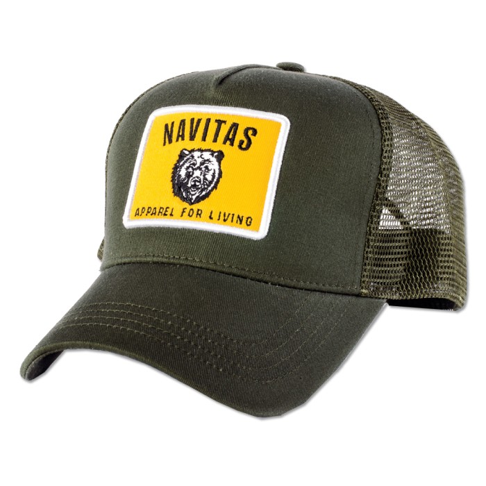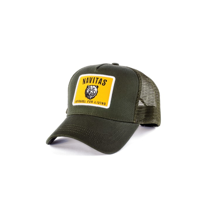 Perfect for Summer, with full mesh back for ventilation, with the Apparel for living Bear patch. The Navitas trucker fits the bill.