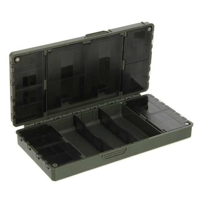 A handy, compact tackle box, ideal for holding various terminal tackle items and accessories. Held together by magnets, accessibility is easy and secure. Added benefits include a 20cm measure on the front, ideal for rig making. With various secure compartments and an adjustable section, this will make a great addition to any angler's tackle.