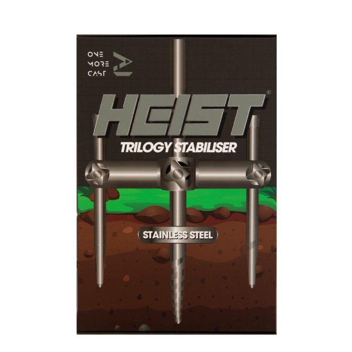 OMC Heist Stabiliser Stainless Steel, The OMC Heist Trilogy Stabilisers are precision engineered, made with the finest materials and delivered with intricate design features to bring you long lasting level bankware. The Heist Troilogy Stabiliser has been developed to work in tandem with the Heist Bankstick range, giving you the ability to create a rock solid stable set-up for those that are serious about their Angling! With the Dual Stainless moving spikes, you can penetrate the earth on both sides of your Banksticks for optimum stability. The Centre bar comes with 3 Captive Custom Designed One Touch Thumbscews, meaning adjustability with minimal effort.