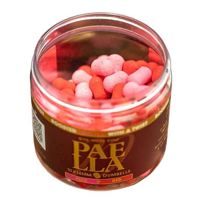 OMC Paella Boosted Fluoro Wafters - Red & Pink have been expertly TWISTED to ignite the senses of fish underwater in the most water-soluble manner possible for a hookbait. These Hi-Viz Fluoro Wafters are not only visually striking but also infused with a rich and spicy meaty and fishy Paella aroma, delivering a scent trail that’s impossible for nearby fish to ignore.