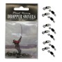 Dropper Swivels are size ten roller body swivels that feature both a round eye and a diamond eye. Frequently used on multi hook surfcasting rigs. Place the round eye onto the rig body mono and the diamond eye for attaching hook-length /snoods.