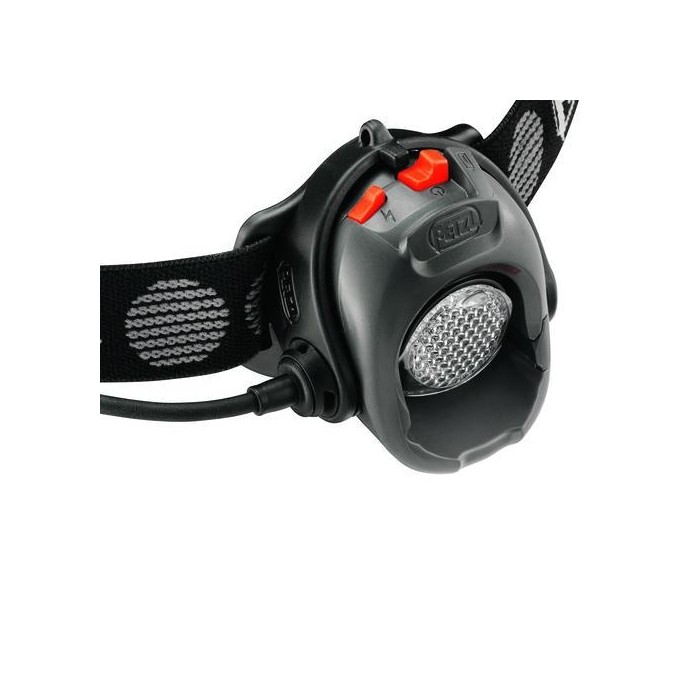 The MYO RXP is the first Petzl headlamp that is programmable, allowing the user to choose the order of constant lighting modes and to precisely adapt light output. To do this, there are three lighting modes, for each of which the user can select the power from among ten possible levels, from 13 to 141 lumens. This feature allows the lamp to be programmed for the type of activity and the length of use. Maximum power lighting would be suited for a short night run, for example; less powerful lighting would help preserve battery life and would therefore be ideal for a multi-day trek. This headlamp has Boost mode (205 lumens) and a strobe mode that can be programmed. It is compatible with lithium batteries to optimize performance, even at low temperatures. The Wide Angle lens offers the option of switching instantly from a focused beam to a wide beam when necessary.