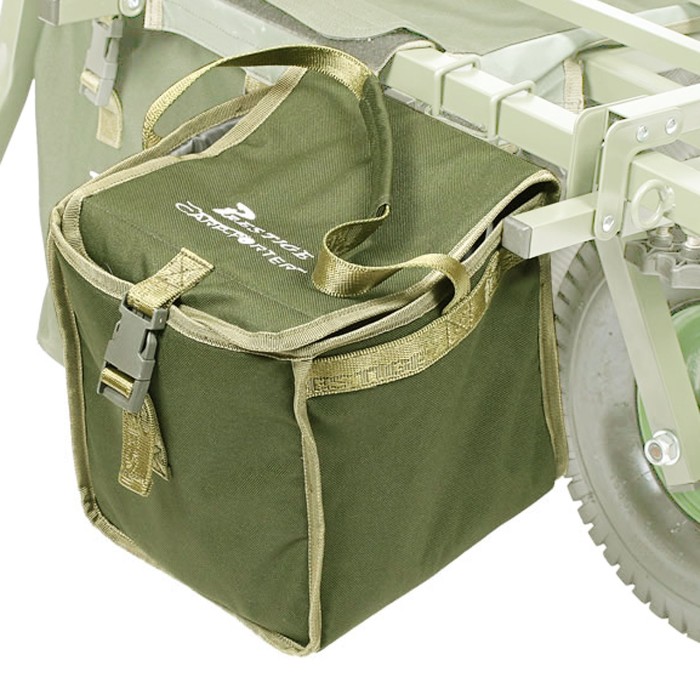 The ability to place heavy bait over the axle and reduce its weight is one of the great advantages of this accessory. Another member of the porter pal group of accessories. Like the other porterpal this accessory features a metal bracket that clips anywhere on the frame. Useful for small to medium size round or square bait containers. We advise strongly that you consider this accessory.