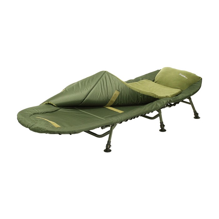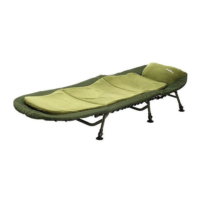 The Dream Bedchair is as sturdy as they get with 6 solid legs. Each one is fully adjustable with a neat locking mechanism and have swivel mud feet. The bedchair comes with a fully removable padded fleece mattress and a zip out pillow. It has a well-padded perimeter to avoid hitting the frame and hand wheels, which themselves work on a ratchet system and allow the bed to be angled at whatever point you require. The lightweight aluminium frame weighs in at 11kg and is finished in a subtle carpy green colour. The mattress also features a discrete little pocket underneath for any belongings. A great value and versatile bedchair that is a dream to sleep on.
