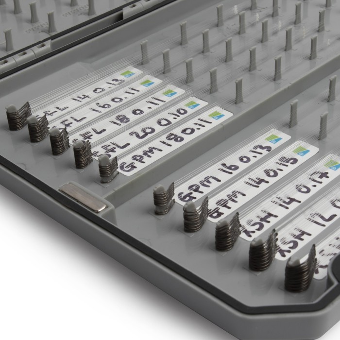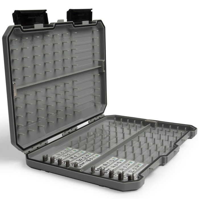 The All-Round Hooklength box is ideal for storing large amounts of hooklengths from 3” (75mm) up to 9” (225mm) long. The capacity is huge with the box featuring long pegs that will accommodate up to 20 hooks. There are 20 available positions for longer hooklengths up to 9” and 40 positions if hooklengths are 3 or 4” long meaning that up to 800 3 or 4” hooklengths can be stored. The gasket helps to prevent water from entering the box which is sealed by two clips and additional magnets on the sides. The box is constructed from an ultra-durable ABS plastic and has fixed pegs which are perfectly positioned and will not let you down. Each hooklength type can be clearly marked on the included labels.