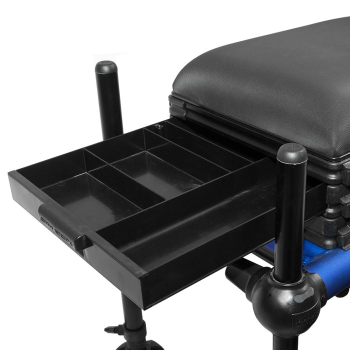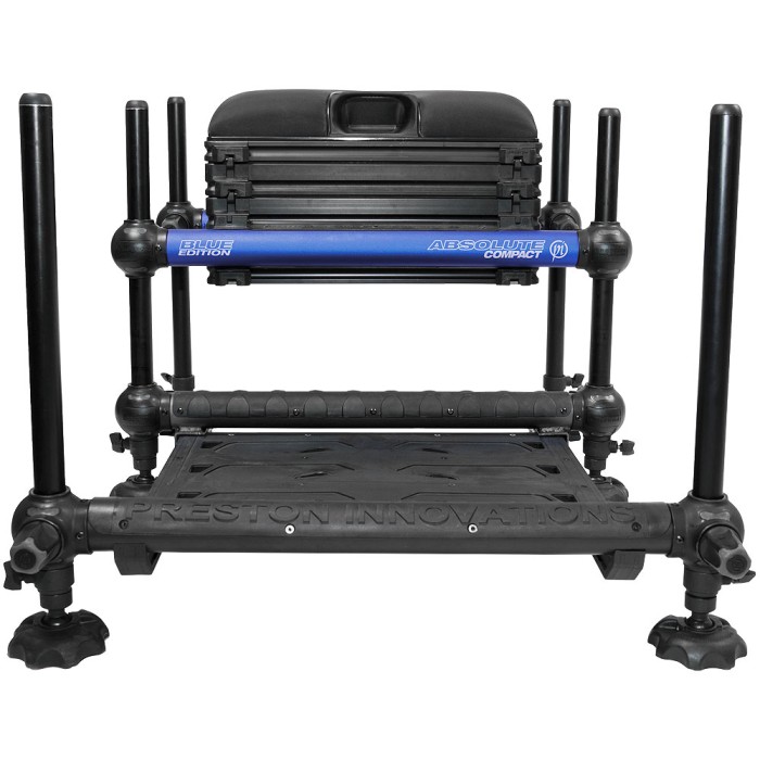 An updated version of the popular Absolute Compact. With a striking new metallic blue finish this box comes complete with a redesigned deeper integral base, 30mm leg configuration, a redesigned carbon-friendly pole retaining strap and new captive internal leg design. Compatible with all current and previous Absolute units and ideal for the space conscious angler that requires all the benefits of a premium modular seatbox.