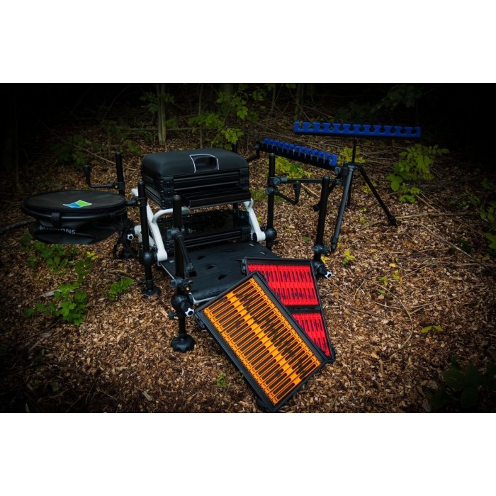 This box is aimed at the angler that wishes to tailor their seat box configuration to their own exact specification. Therefore, it is supplied as a basic, stripped down version with the option of adding the required amount of winder trays and drawers suitable for the individual. Complete with tried and tested 30mm leg configuration, ergonomic handwheel design and solid covered footplate with handy ‘triple start’ handwheels for ease of assembly, the box now boasts a redesigned carbon-friendly pole retaining strap, new captive internal leg design, improved detachable shoulder strap as well as threaded inserts on two of the six legs. Sporting a striking white frame with contrasting trim and graphics this really is the box to be seen with on the bank. Lighter Aluminium construction, Carbon-friendly pole retaining strap, Integral spirit level, Removable quick lock footplate, Detachable shoulder strap, Captive internal telescopic legs, 30mm profile legs (2 with threaded insert), Anti-snag hand wheels.