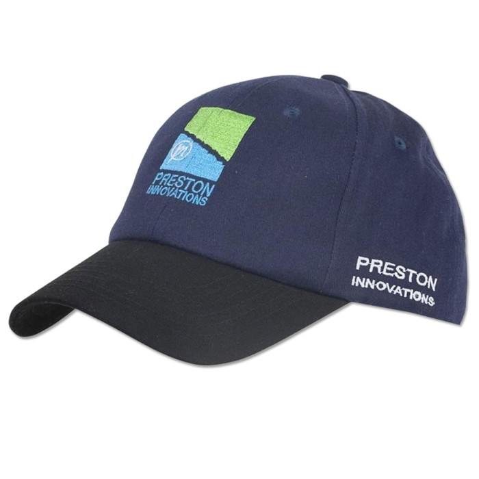 Stylish blue cap with black peak and embroidered logo. The long peak is great for cutting out the glare from the sun.