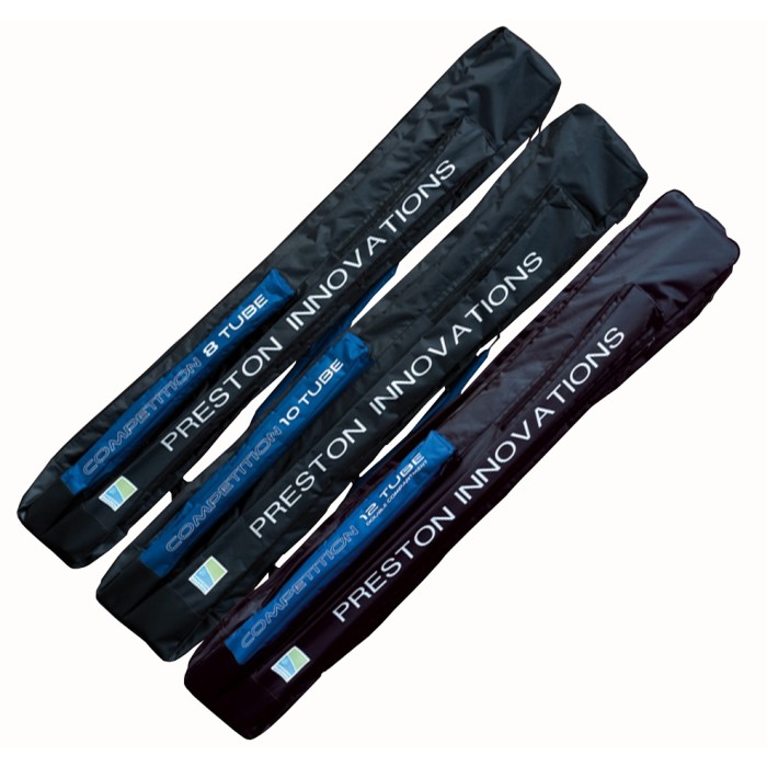 Zipped to the base to allow easy access to the main compartment (double compartment on the 12 tube), which has elasticated straps to hold tubes or poles. Large 3/4 length pocket for brollies and landing net handles, plus a shorter outside bankstick pocket with reinforced base. Available to accomodate 8, 10 or 12 rod tubes.