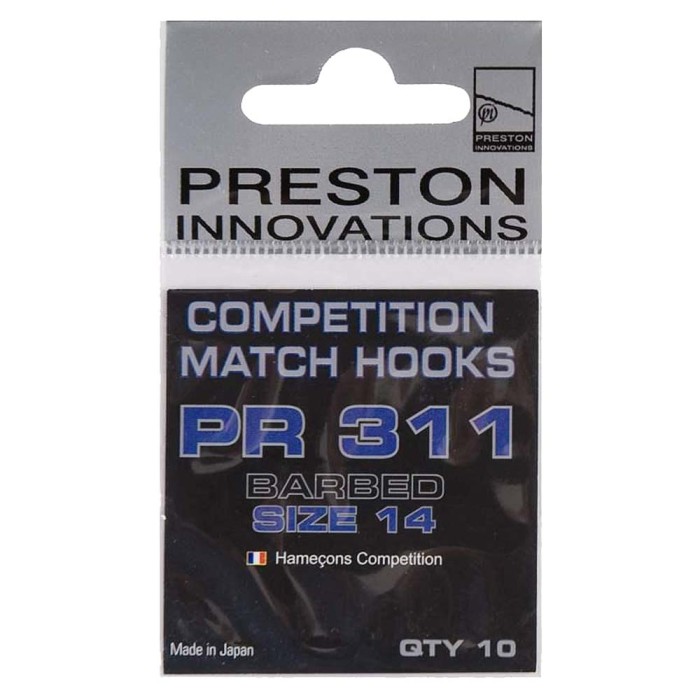 Prestons PR hooks are established as one of the leading brands of match hooks and cover everything from bloodworm to match carp fishing. All PR hooks are made from 110-carbon steel with chemically sharpened points. New for this year is a range of barbed Competition Hooks. These are top quality hooks made using 110-carbon steel and chemically sharpened points.