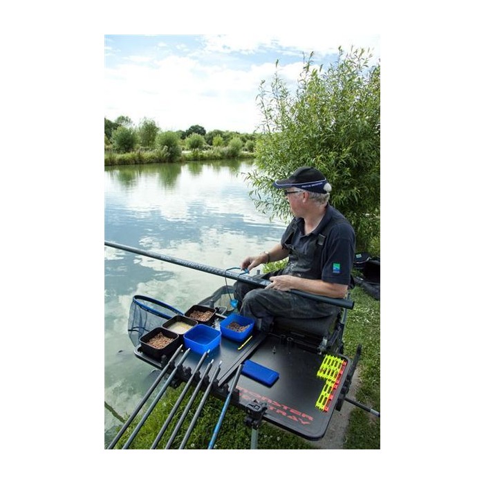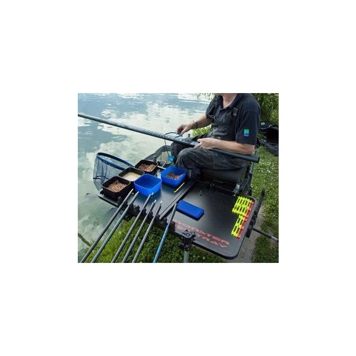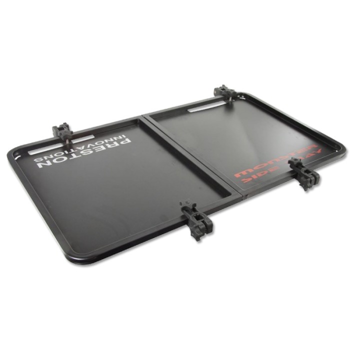 The Monster Side Tray has been designed for high-end competition fishing and for anglers that require a large amount of space on their side tray. The lightweight, two-piece aluminium construction makes it easy to transport. Supplied with two supporting legs providing an ultra stable set up. The twin leg attachments can be repositioned making it suitable for any seatboxes with a leg pitch between 17cm and 75cm. Can also be used as a one piece smaller side tray with single supporting leg if required.