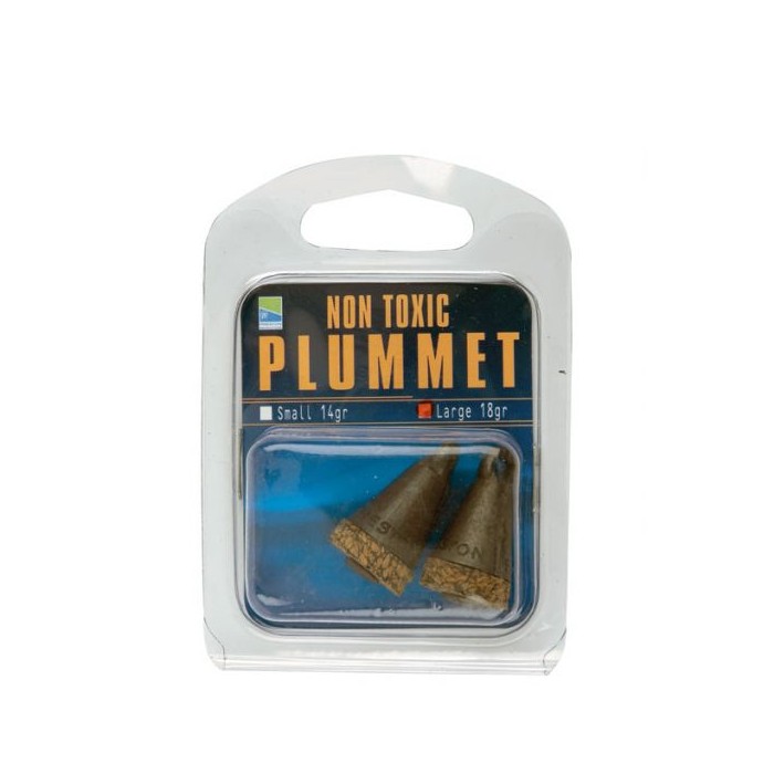 Large diameter top hole and grooved body for line location. Non-toxic alloy with flat cork base for accurate plumbing. Two per packet. Available in two sizes: 14g and 18g.