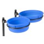 A plastic groundbait bowl with a rigid hoop fitted for attaching to a seatbox or platform legs.