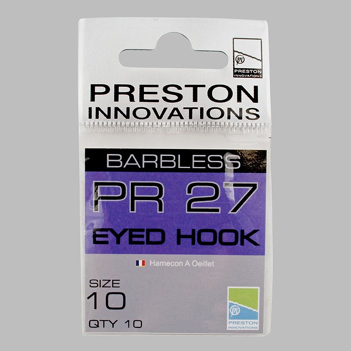 Preston Innovations PR range of hooks have been taking the match world by storm. All are manufactured from advanced Carbon 110 Steel, chemically sharpened for a perfect finish and are incredibly sharp. The Preston PR27 hooks are eyed, barbless with round bend and bronze finish.