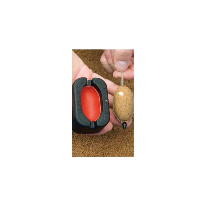 Easy to use, simply place the hookbait in the mould and cover with groundbait. Place the Preston Flat Feeder face down and push into the mould. Turn mould over and push the release button. Lift the feeder out and you have a perfectly shaped method!
