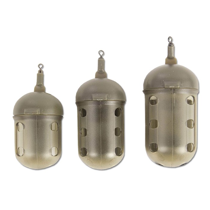 Preston Innovations QuickLoad Feeders, Quickload feeders can be filled quickly with the cap trapped on the swivel link. Cut guides on the sides make them easy to be opened out for larger particles. Finished in an unobtrusive brown colour and with a range of different loadings these block-end feeders have a slightly oval profile.