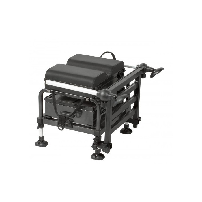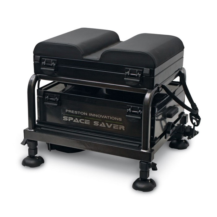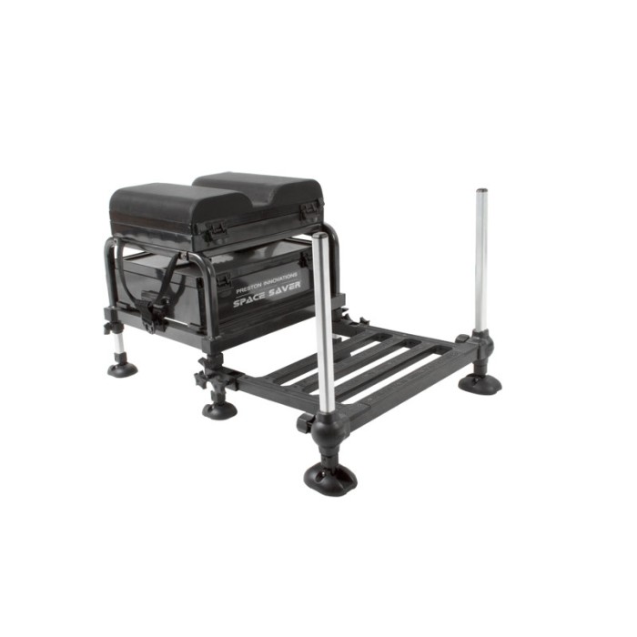 The new Space Saver Space Station is a solid, reliable addition to the Space Station range that has a small footprint making it easy to transport. Supplied without a footplate, the Space Saver has integral adjustable legs that move within the hollow frame. OffBox accessories can be attached thanks to a unique bracket that attached to the frame. A 90mm Base Unit is attached to the base of the frame on runners, with the new side locking catch design. On top of the frame is a 2 Compartment Add-on unit and our OnBox pole seat.
