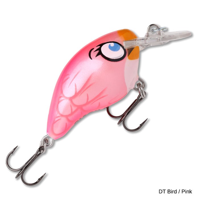 Cute and bubbly! The DT Pink Bird does not look threatening, yet it will capture the fish and give them no chance. Perfectly consistent wood combined with carefully placed internal weights, a tapered fuselage and a thin tail creates the ultimate crankbait action with least possible resistance on the retrieve for less fatigue during extended use. All DT lures have an internal rattle.