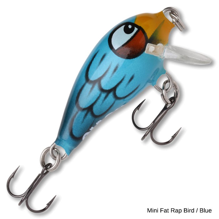 Triple threat! Small in size, but not to be underestimated, the Mini Fat Rap Blue Bird will get them! For taking finicky fish, the tight swimming action is just right. The sinking Mini Fat Rap Blue Bird works with unmatchable action for attracting trout and other smaller predators.