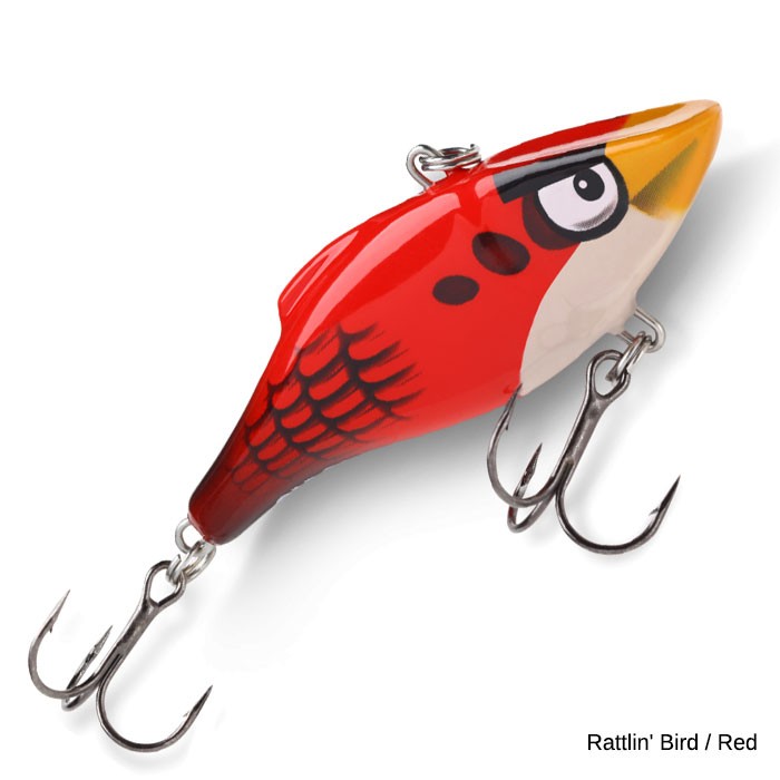 How to fish: Sound and vibrations become especially important in murky water and low light conditions when visibility is poor, and thats where the Rattlin Red Bird really shines at least figuratively speaking. The Rattlin Red Bird is a very straight running lure and easy to fish around cover. Change the speed of the retrieve to explore different depths. To fish openings in vegetation, cast the lure to the far side, let it drop into the hole and retrieve back. If you hit weeds, just rip hard to free the lure. If the lure contacts rocks or hard structure, simply jerk it free. In deeper water let the lure sink into the desired depth and use a rip and jig retrieve or simply fish the Rattlin Red Bird as a vertical jigging lure.